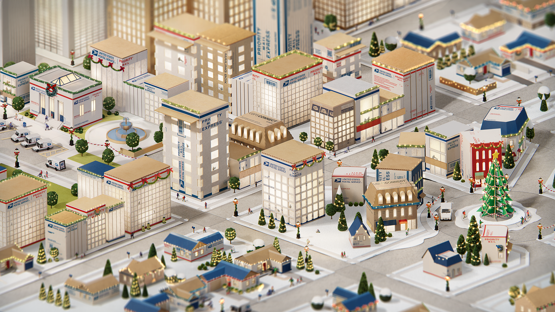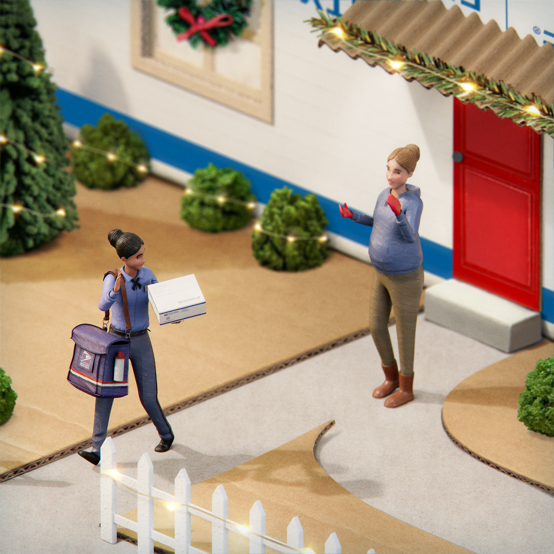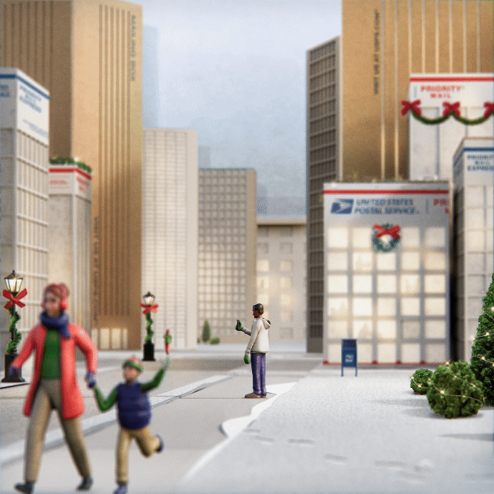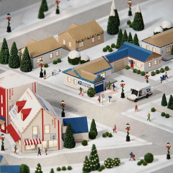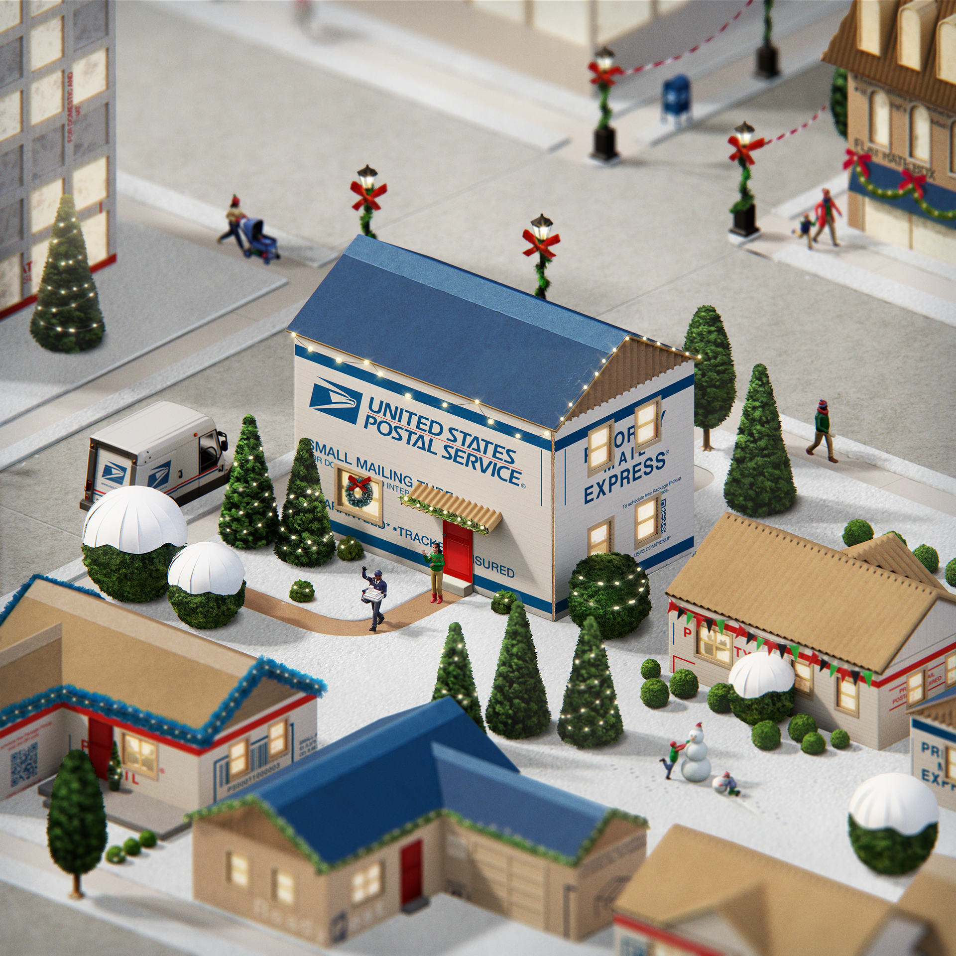 For the United States Postal Service's 2023 holiday campaign, we created a 3D miniature world entirely constructed from boxes, envelopes, and shipping supplies. As part of the MRM/McCann Worldgroup creative team, Sergio oversaw the D&ADย of the Rich Media Banners segment of the campaign. This portion was produced in CGI by Hornet Studio and distributed widely across the internet through various media vendors, including Vox, MiQ, IronSource, and many others.