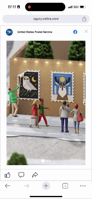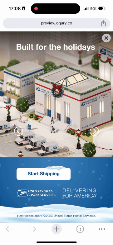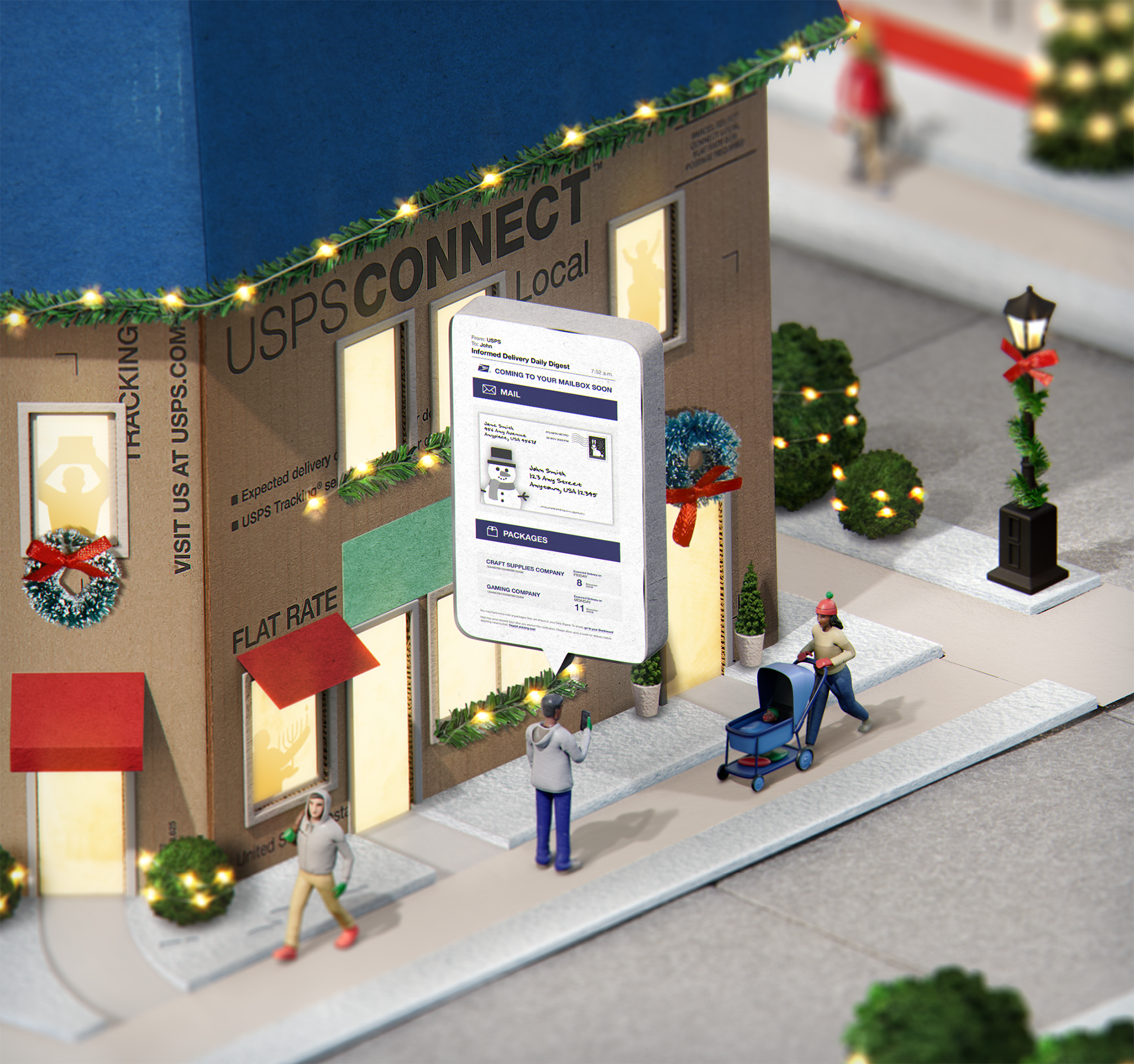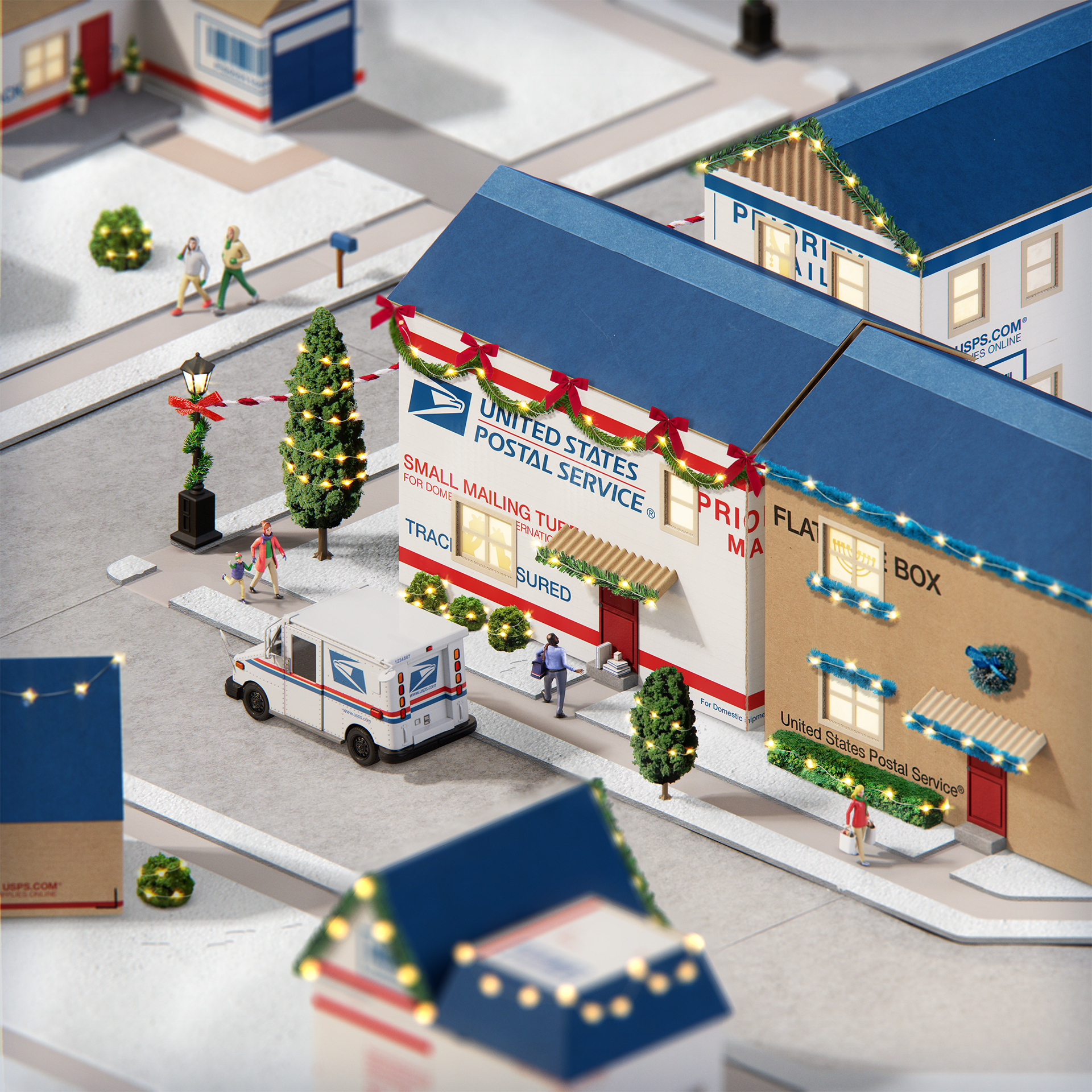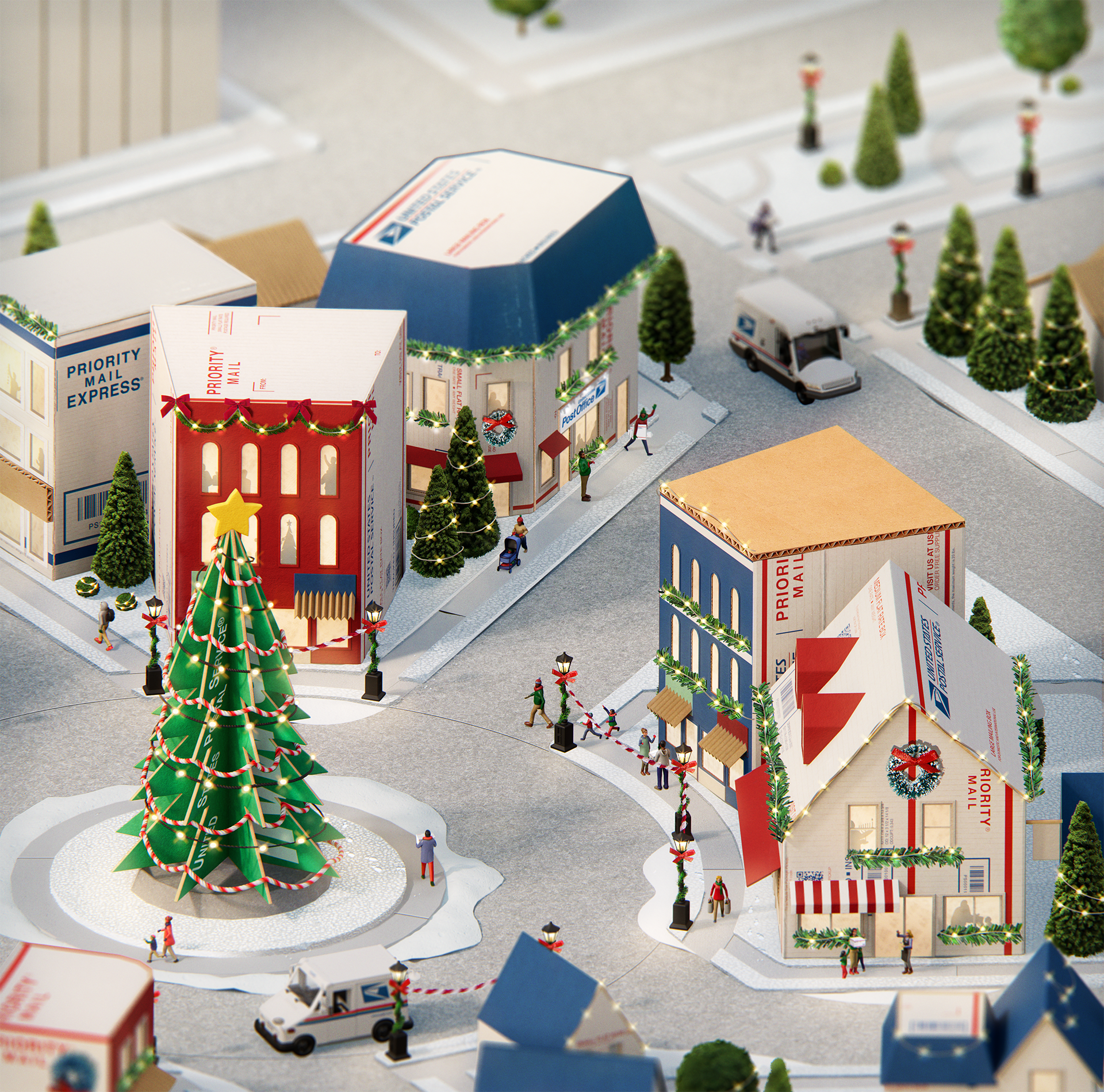 For the United States Postal Service's 2023 holiday campaign, we created a 3D miniature world entirely constructed from boxes, envelopes, and shipping supplies. As part of the MRM/McCann Worldgroup creative team, Sergio oversaw the D&ADย of the Rich Media Banners segment of the campaign. This portion was produced in CGI by Hornet Studio and distributed widely across the internet through various media vendors, including Vox, MiQ, IronSource, and many others.