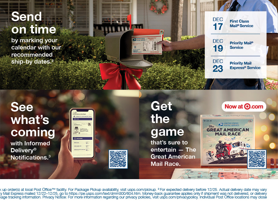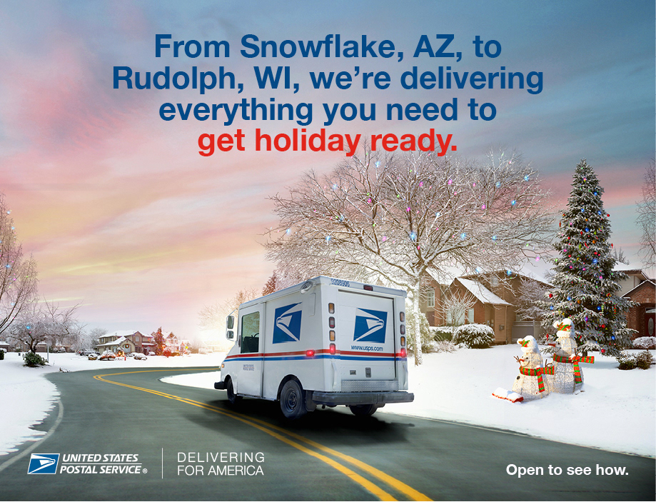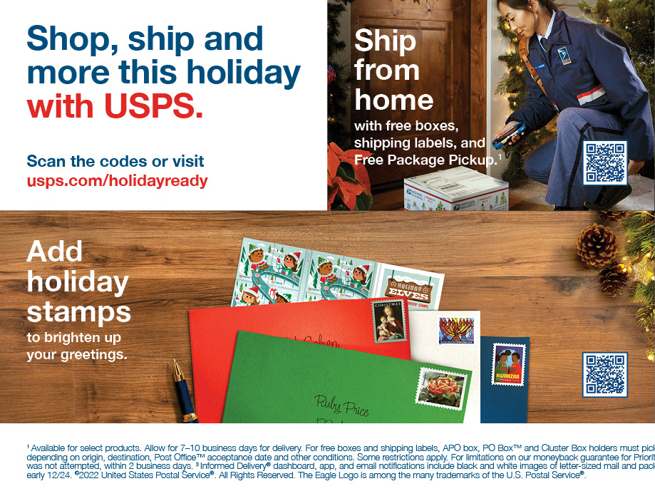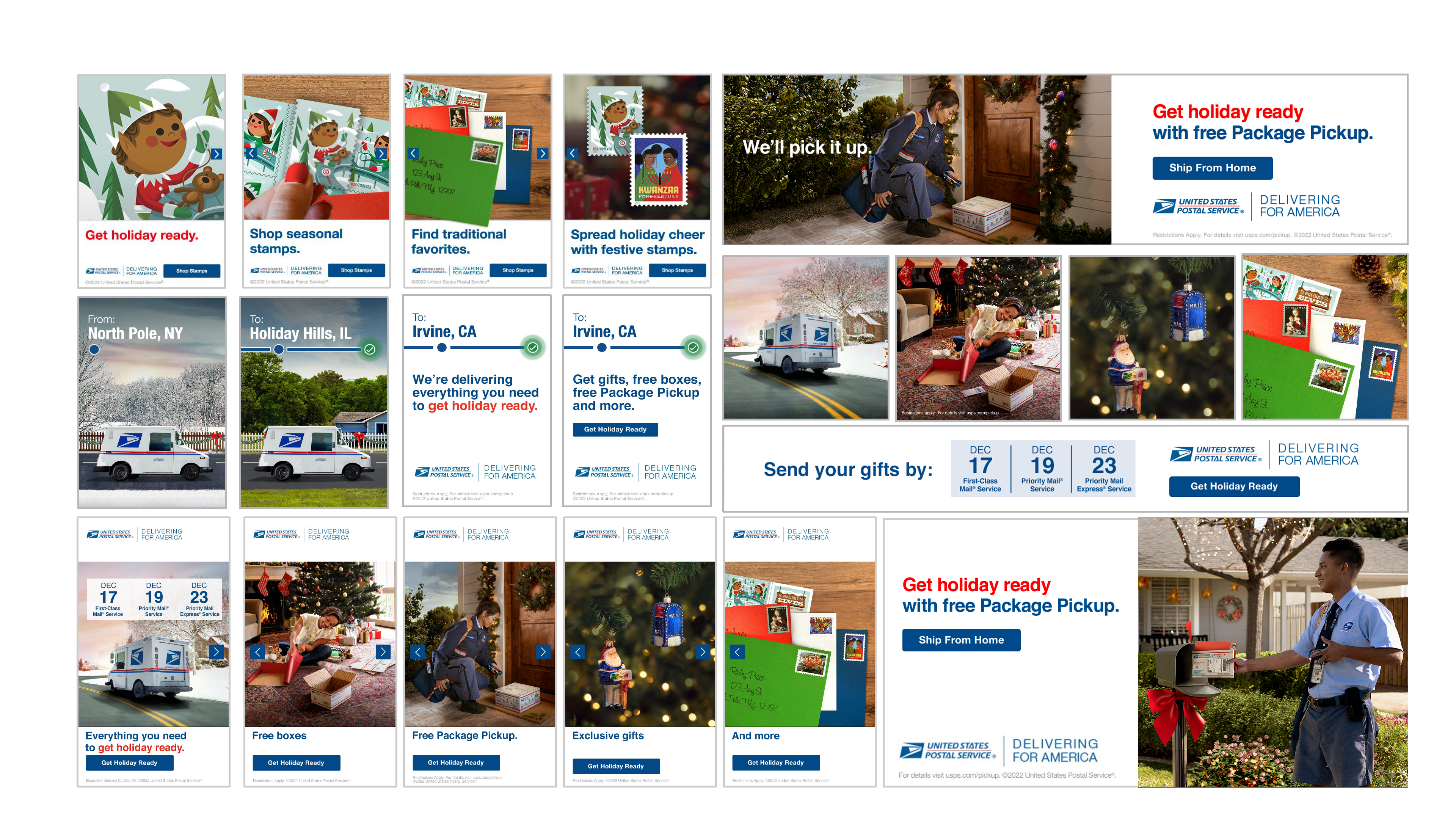 And, a diverse assortment of display ads highlighting USPS holiday products:
