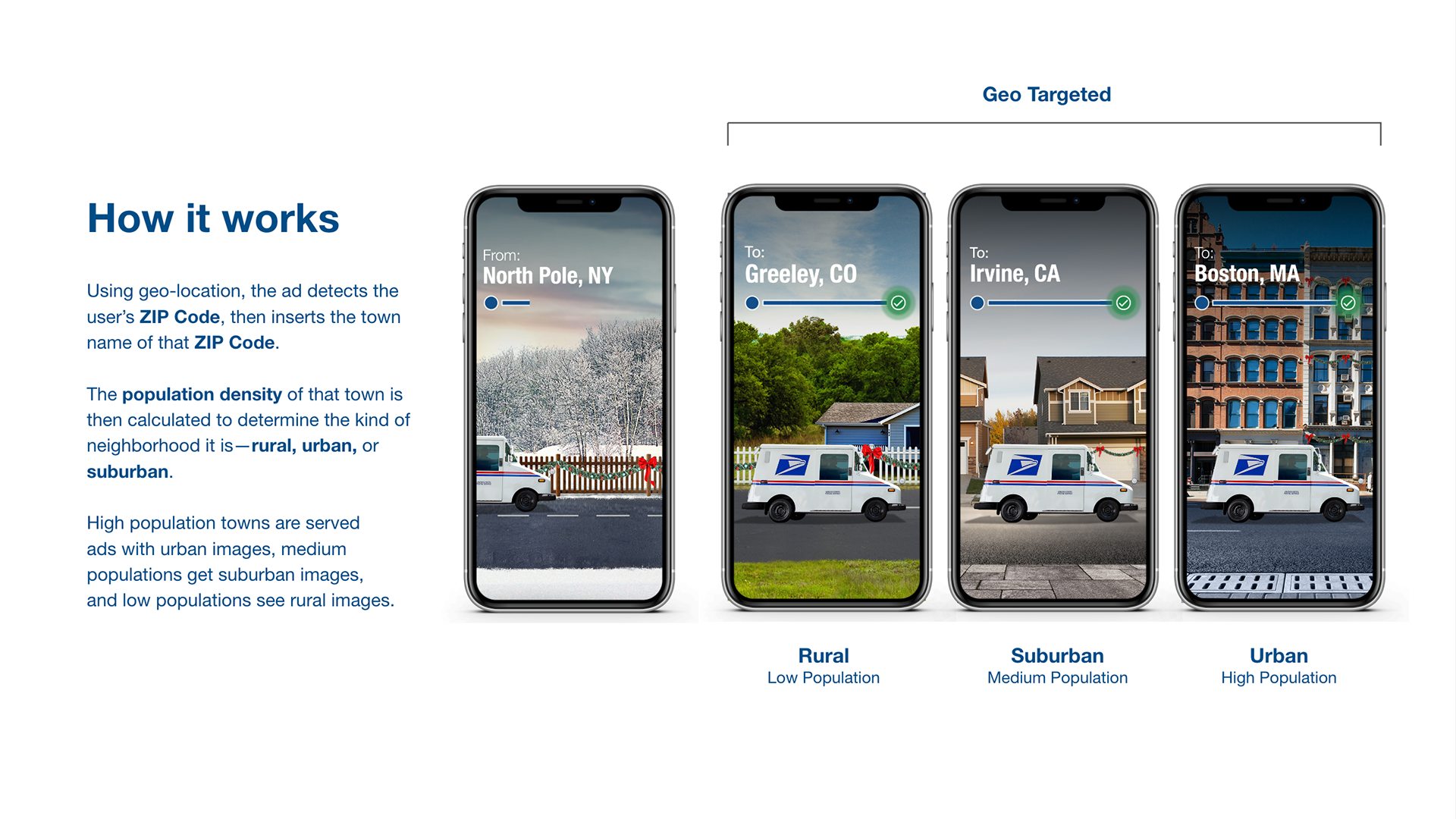 Every holiday campaign demands an extensive range of media, all centered around a core concept with IAT shared imagery. In 2022, MRM/McCann Worldgroup embarked on an ambitious venture to craft the entire campaign from the ground up, drawing from a pool of 110 stock images, assets from three previous USPS holiday photoshoots, and an extensive collection of photo manipulations.