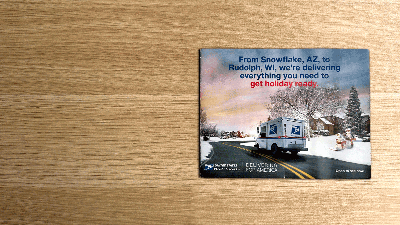 Simultaneously, we meticulously designed layouts for the physical DM mail pieces, as the USPS Holiday mailer reached nearly every address in America. Following design approval, we engaged in multiple rounds of color proofs, conducted press-checks, and ensured the final output was flawless.ย After all, no one wishes for a typo to be seen by 121,243,523 people.